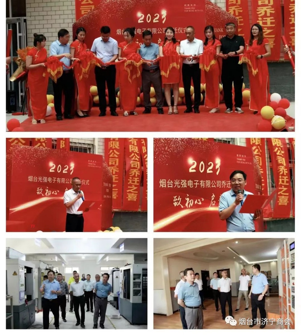 On the morning of June 17th, the moving ceremony of the new factory area of Xingyuan East Road, Fushan District, Guangqiang Electronics Co., Ltd., the executive vice president unit of our association and a representative enterprise in the field of electronic technology, was successfully held. Yu Yanjun, member and vice chairman of the Yantai Federation of Industry and Commerce Party Group, Yantai Liu Minggang, section chief of the Publicity Department of the Municipal Federation of Industry and Commerce, and Yang Jiansong, director of the Fushan District Industry and Information Bureau, and other leaders visited the celebration site and visited and guided the work.